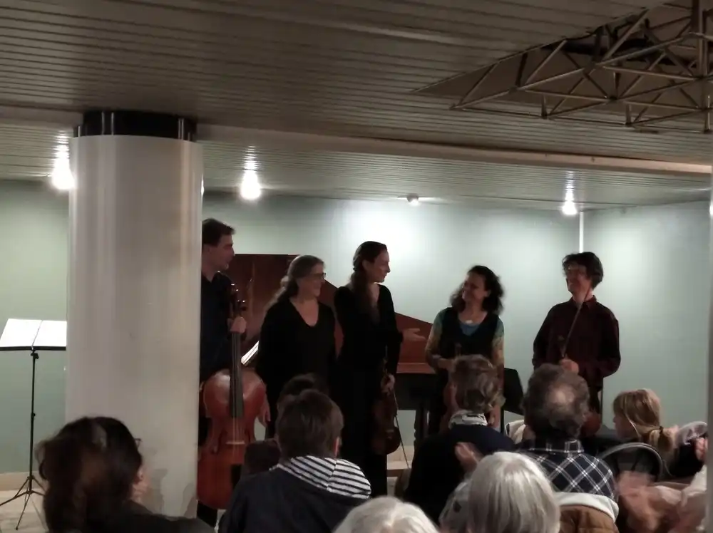 Le choeur de flûtes à bec Concerto di Flauti vous propose un petit concert constitué de musiques baroques (Albinoni, Purcell), et de musiques moins anciennes : Joe Hitashi (« Mon voisin Totoro ») et « Smoke Gets in Your Eyes » de Jerome Kern.